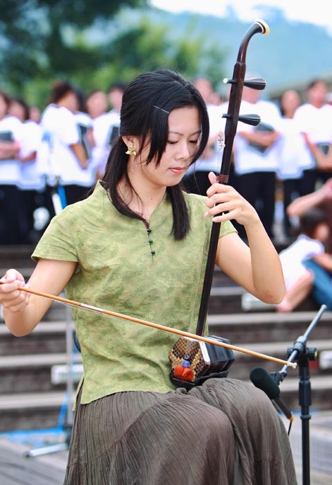 法轮功学员集聚日月潭举行庆祝世界法轮大法日活动,王奕心二胡演奏