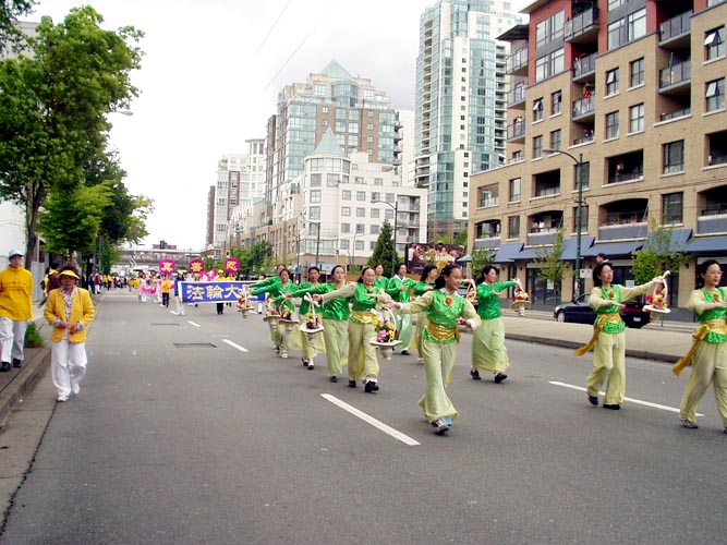 加拿大温哥华举行盛大的庆祝大法洪传十一周年游行