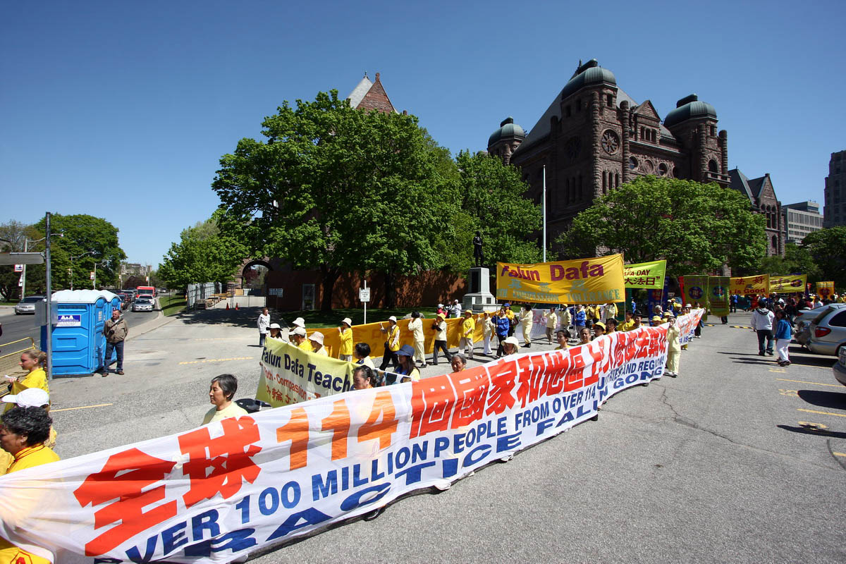 多伦多法轮功学员庆祝第十届世界法轮大法日集会游行