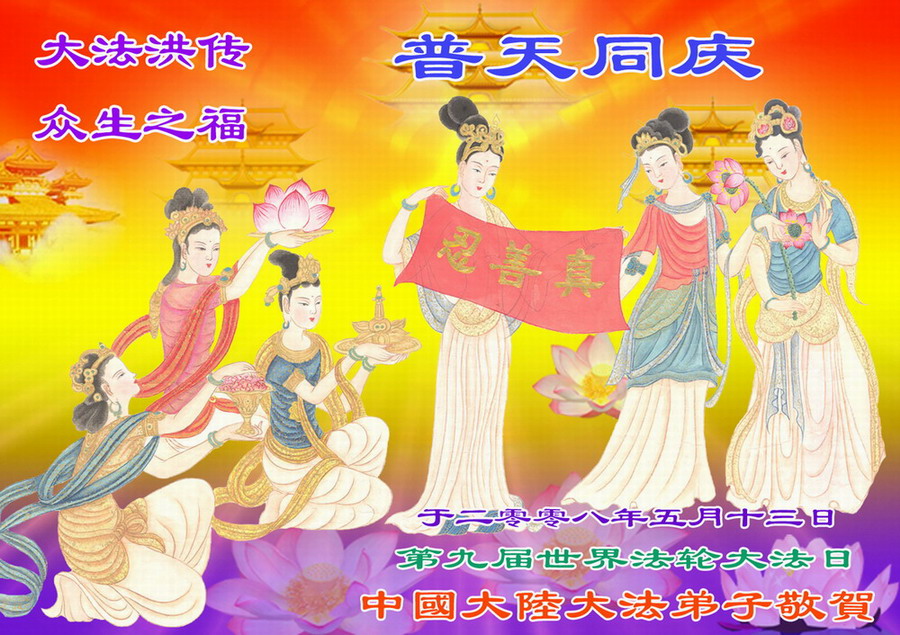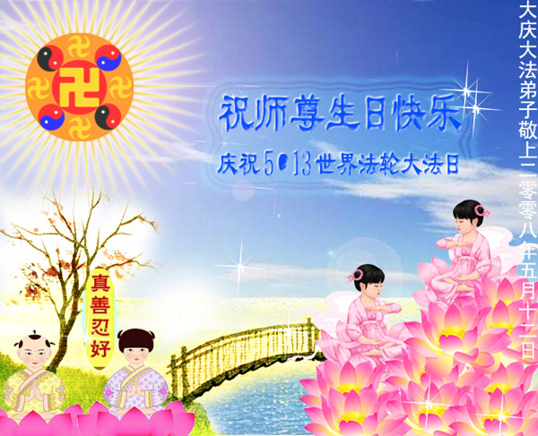 大陆大法弟子祝贺世界法轮大法日暨师尊寿辰 2008-5