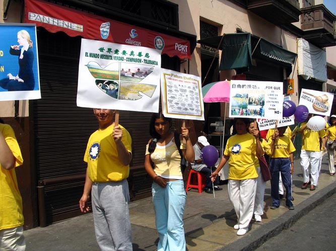 南美洲秘鲁法轮功学员于2005年5月13日举行了庆祝第六届世界法轮大法日的活动