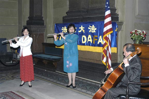费城市议会议员参加庆祝法轮大法洪传11周年典礼著名音乐之家法轮功学员陈汝棠夫妇和女儿陈缨参加演出