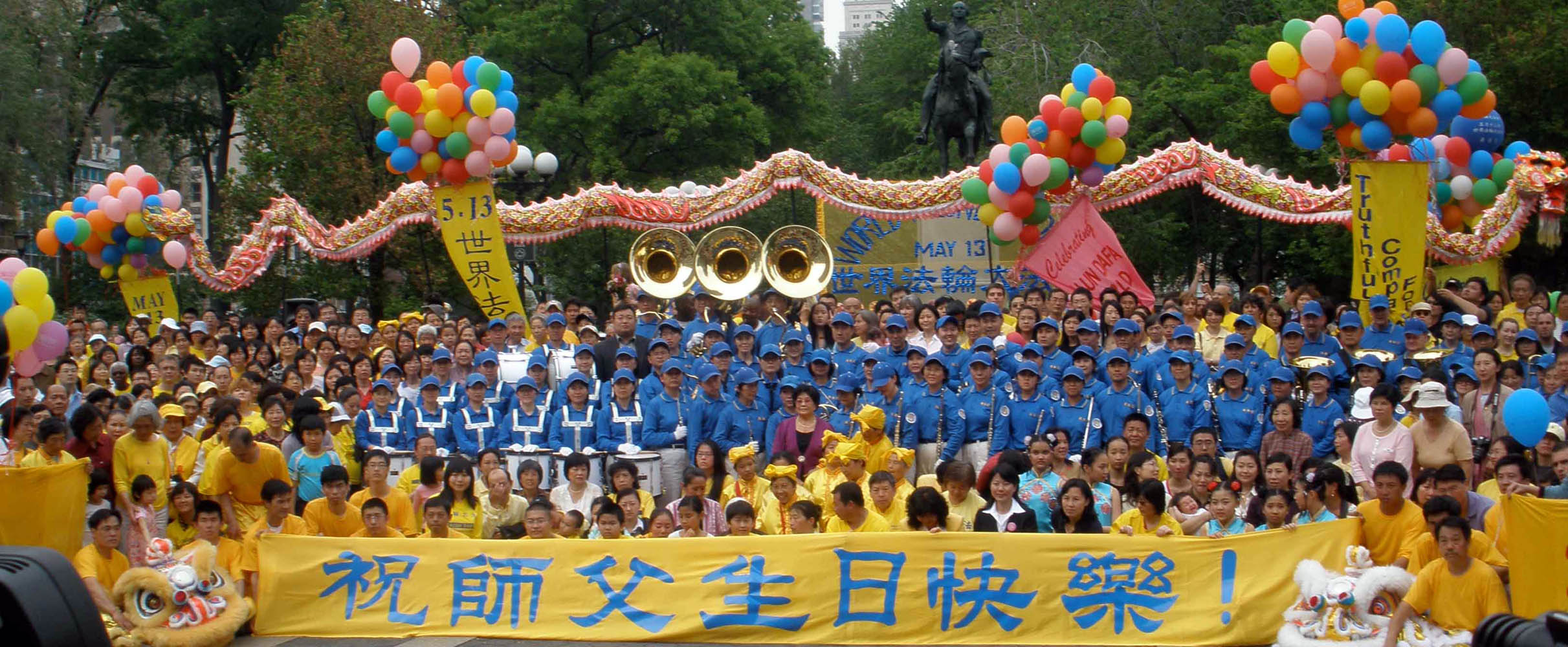 纽约大集会庆祝世界法轮大法日 图为祝师父生日快乐