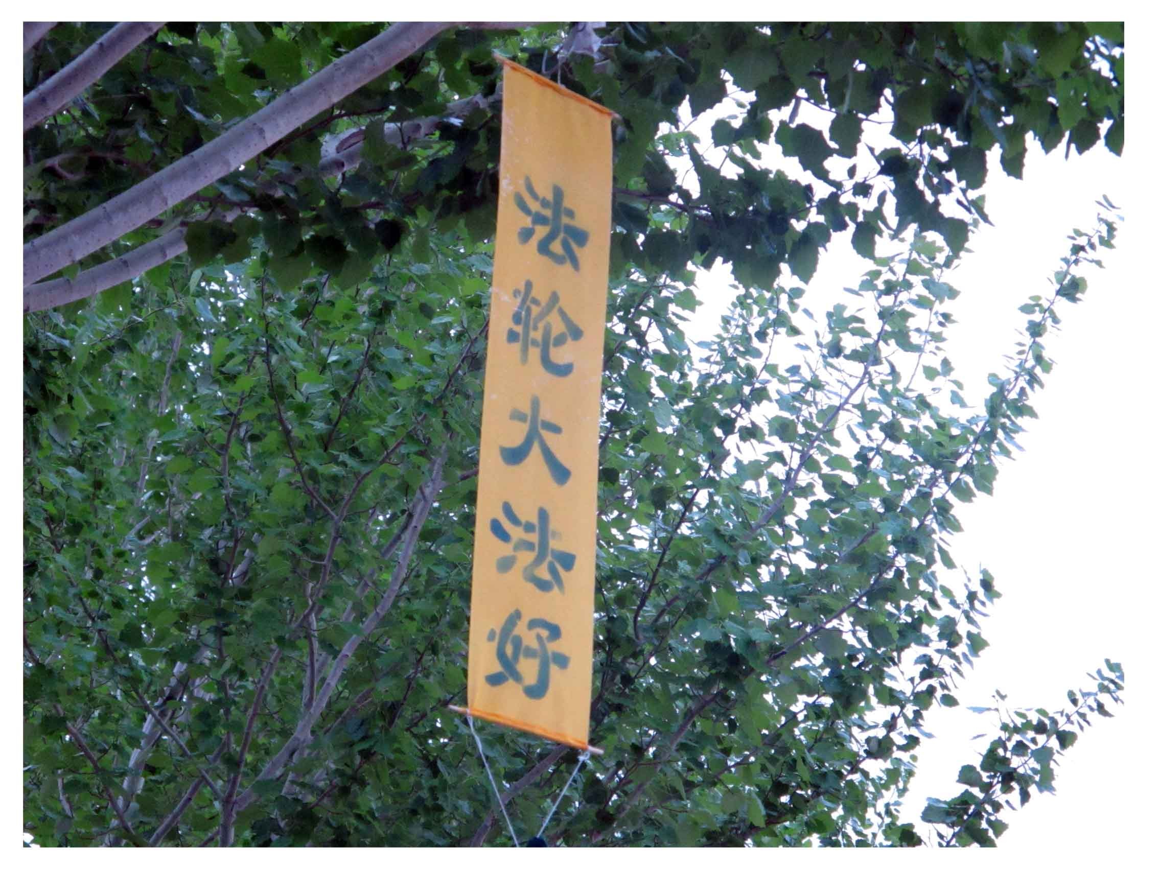 东北某地大法弟子悬挂书写的真相条幅