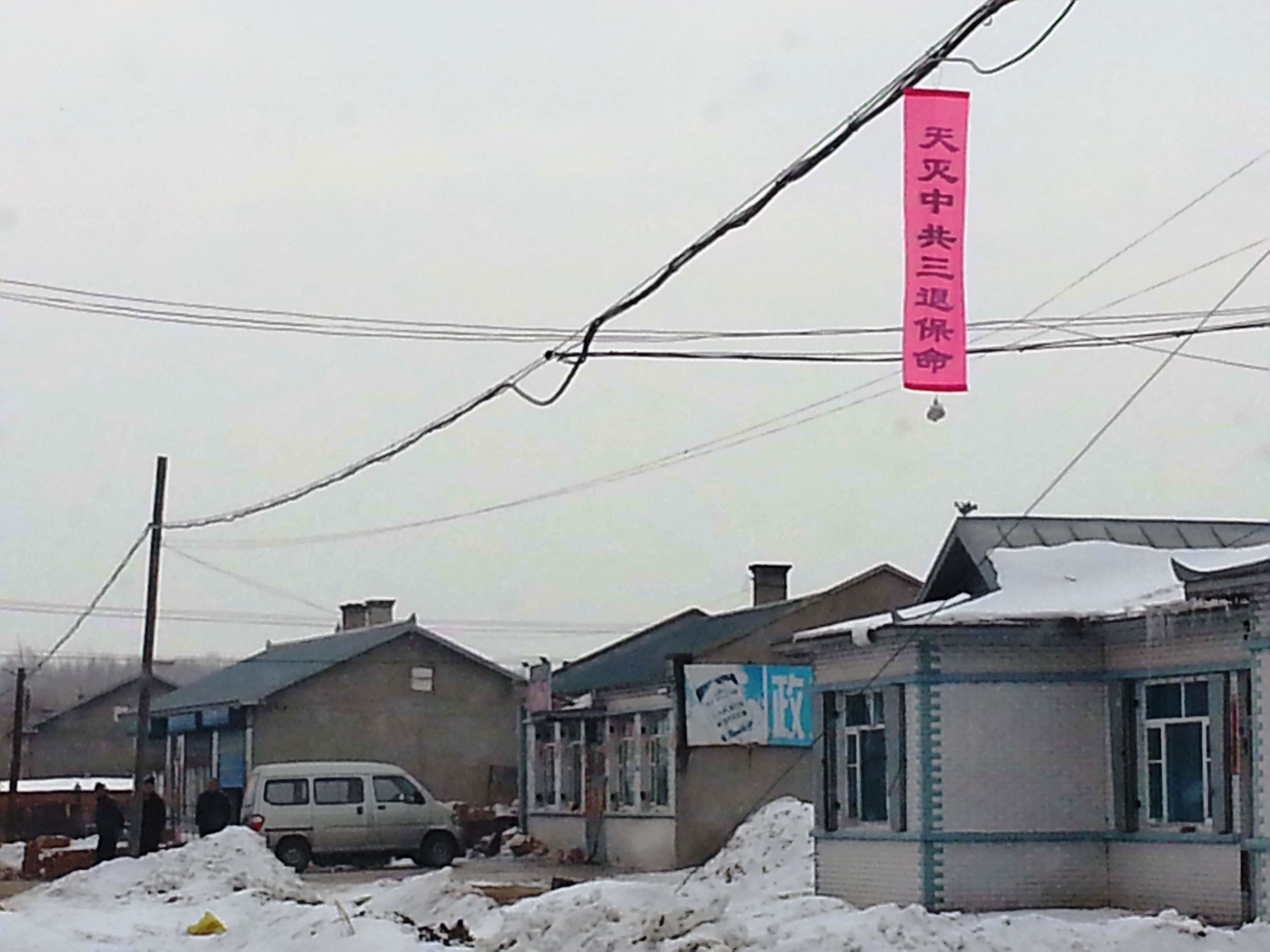 图片:东北某地春节期间的法轮功真相标语