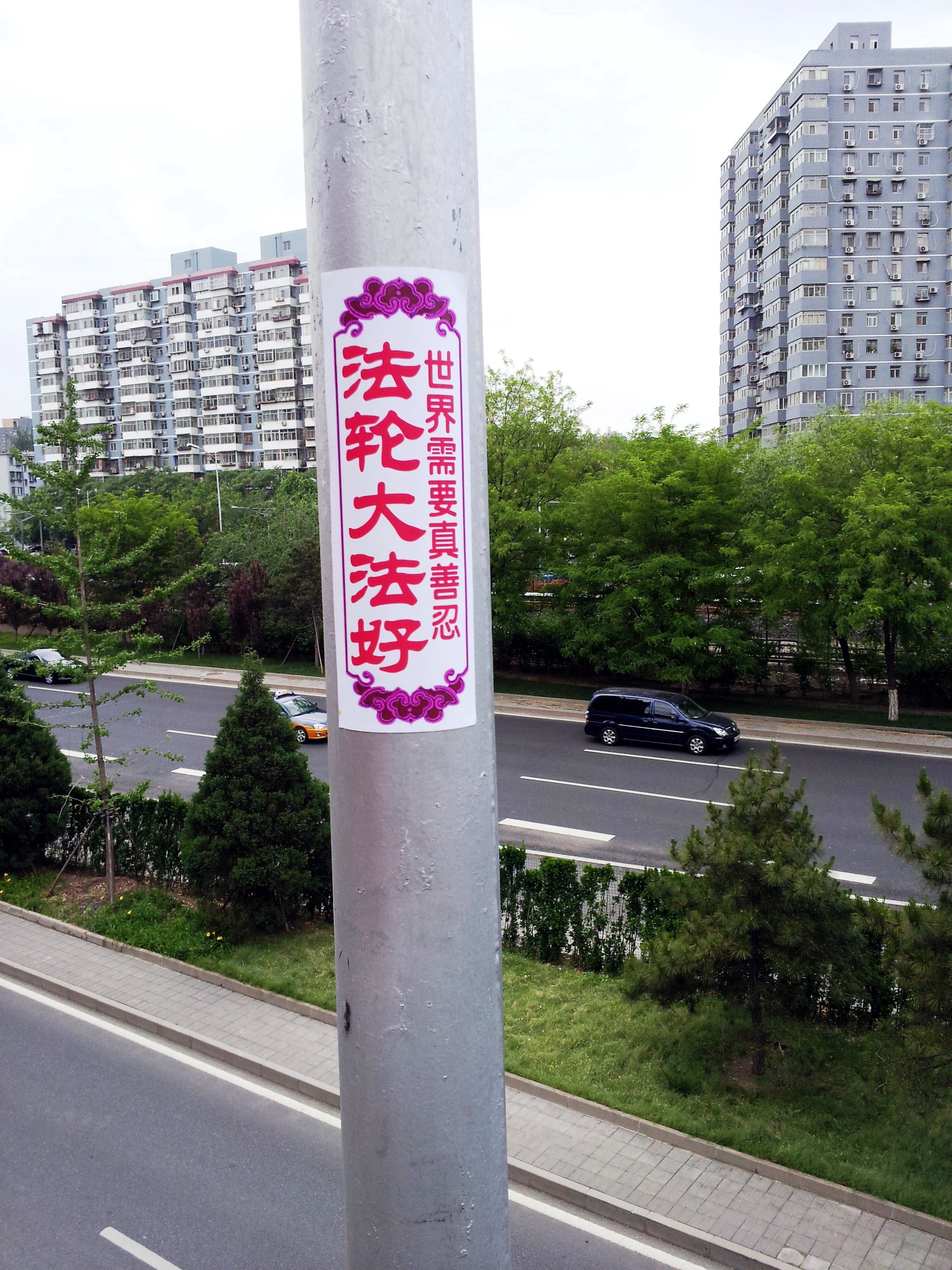 北京街道贴的法轮大法好粘贴