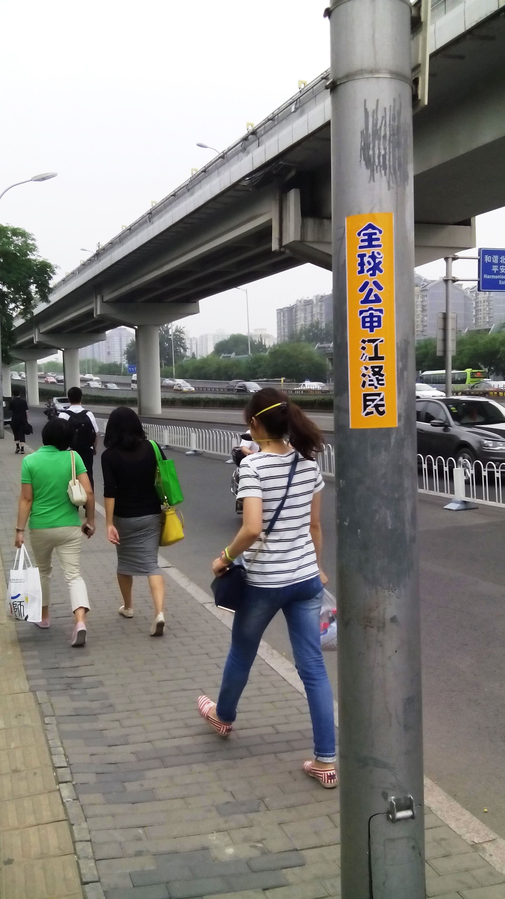 北京街头多处可见"全球公审江泽民"标语