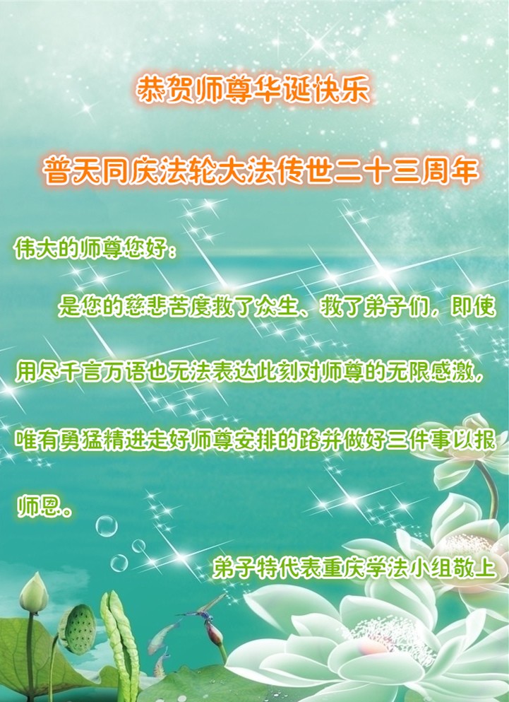 重庆大法弟子恭贺世界法轮大法日暨师尊华诞(27条)