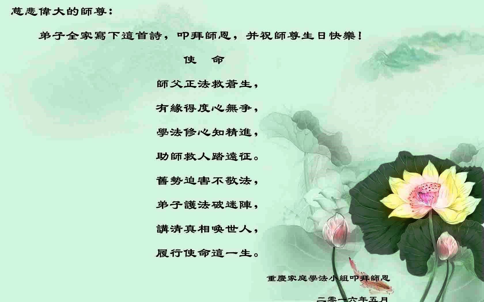 重庆大法弟子恭贺世界法轮大法日暨师尊华诞