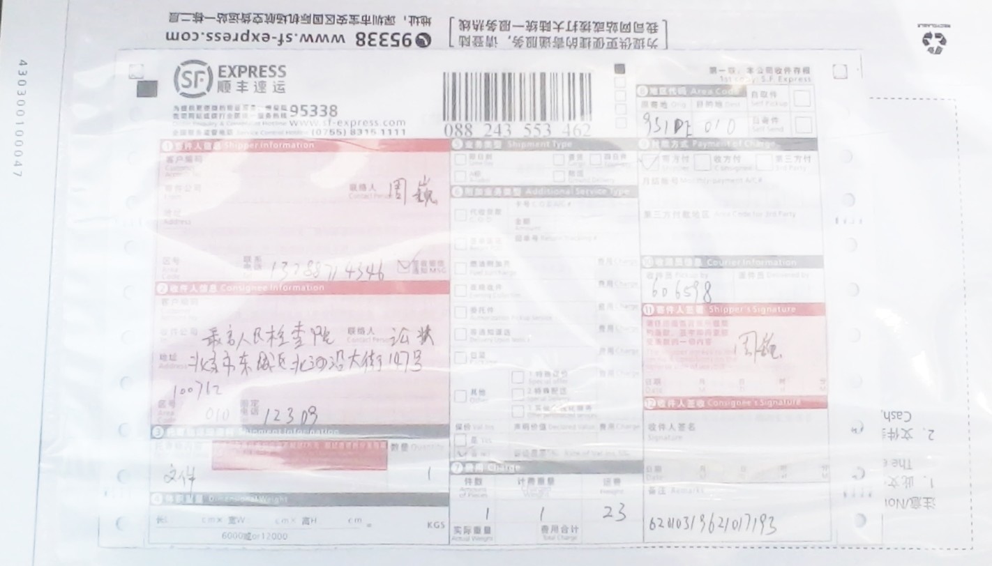 甘肃金昌樊永成、雷占香邮递诉状的回执