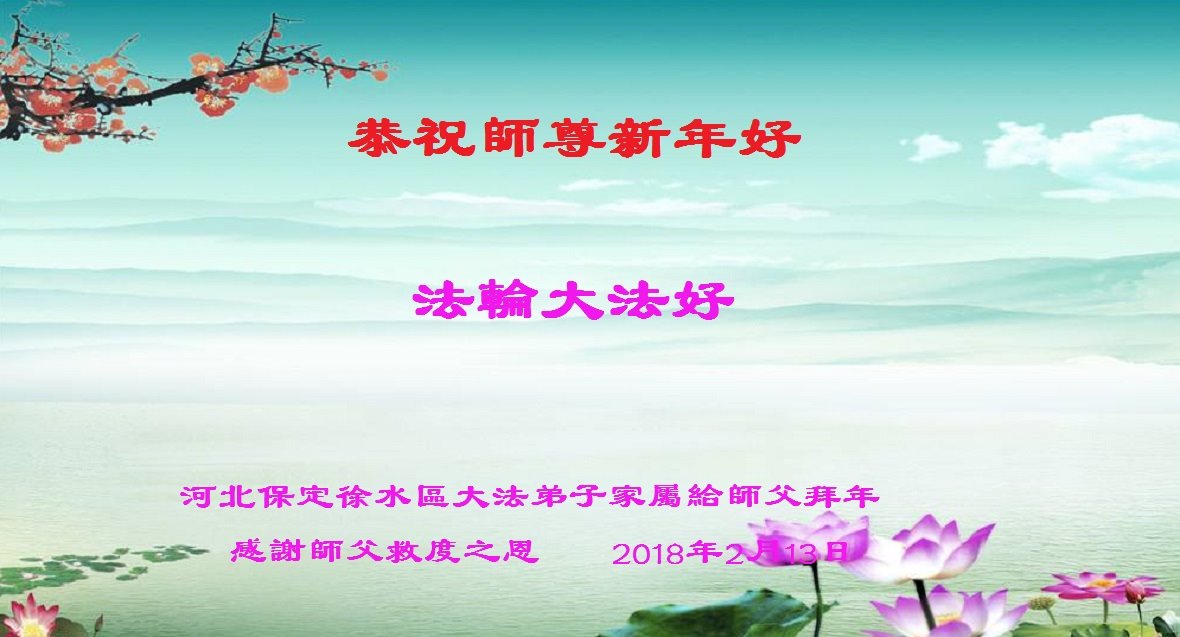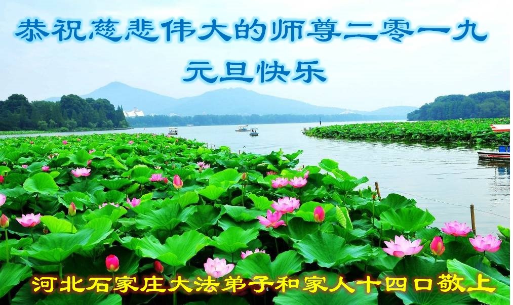 河北省石家庄一家三口大法弟子恭祝慈悲伟大的师尊新年快乐