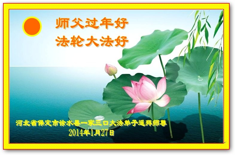 河北省石家庄大法弟子一家三口恭祝慈悲伟大的师父元旦快乐