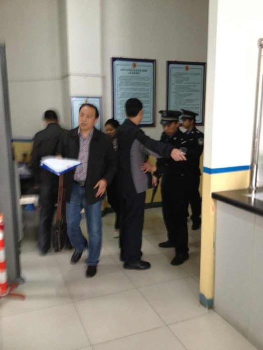 任丘市法院非法庭审未通知家属和律师图为监视家属与亲友的警察
