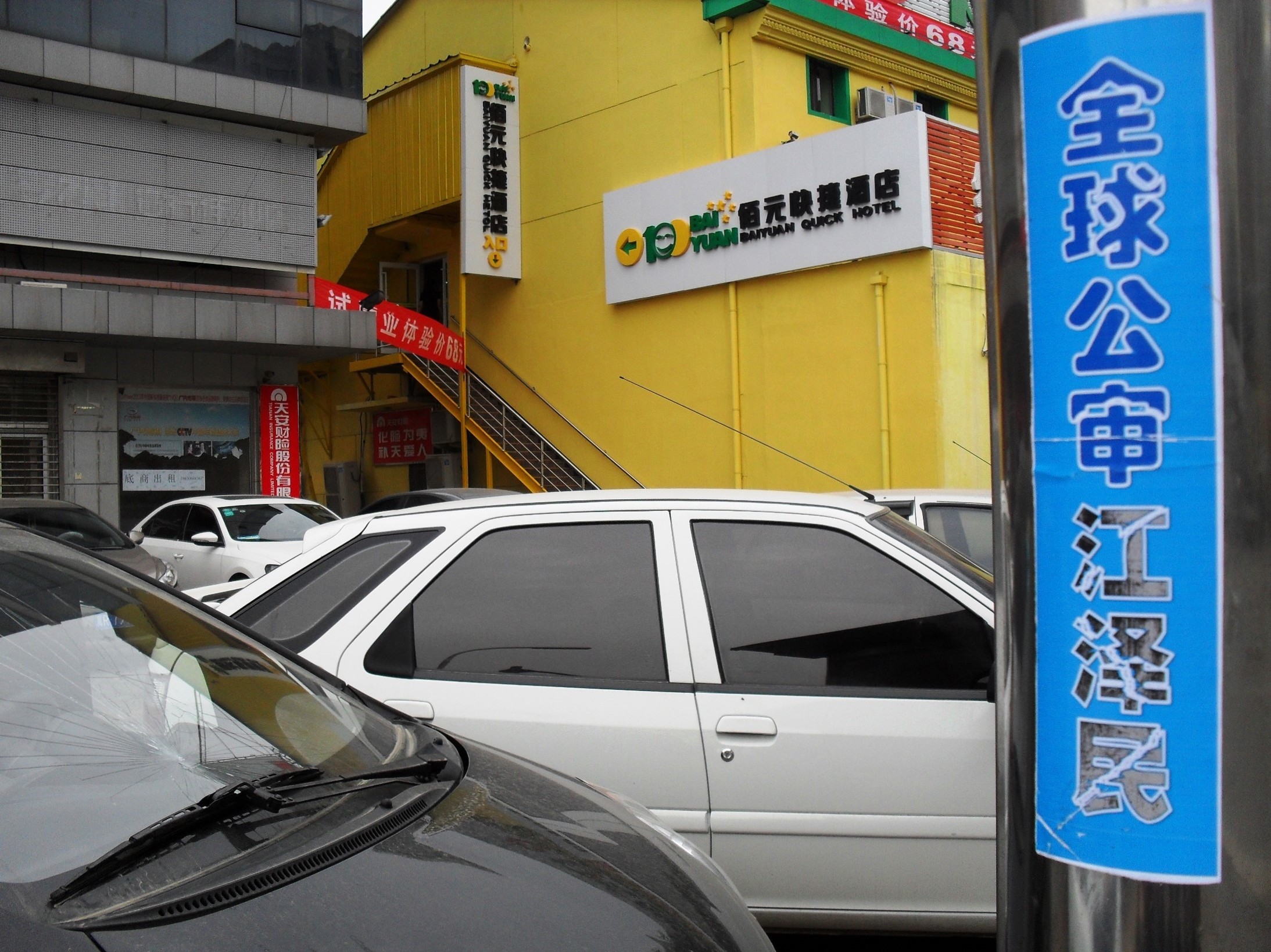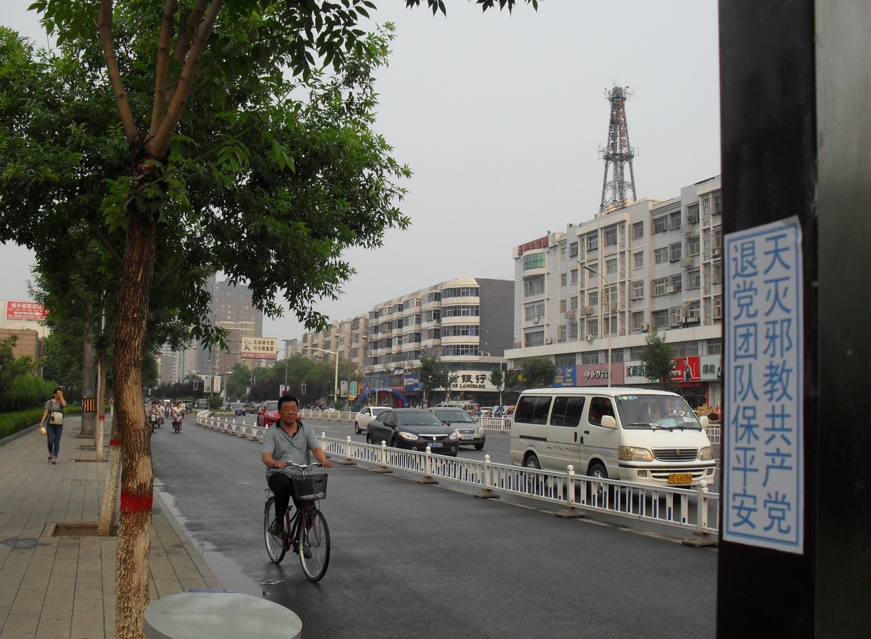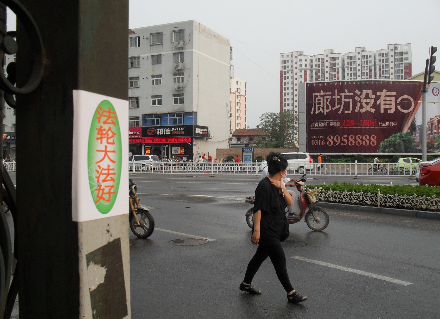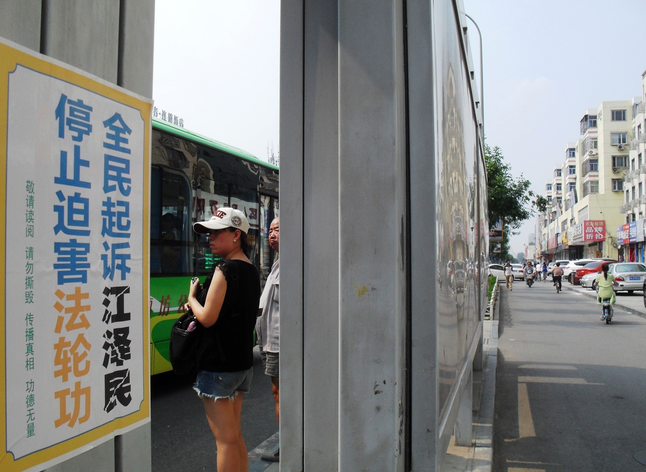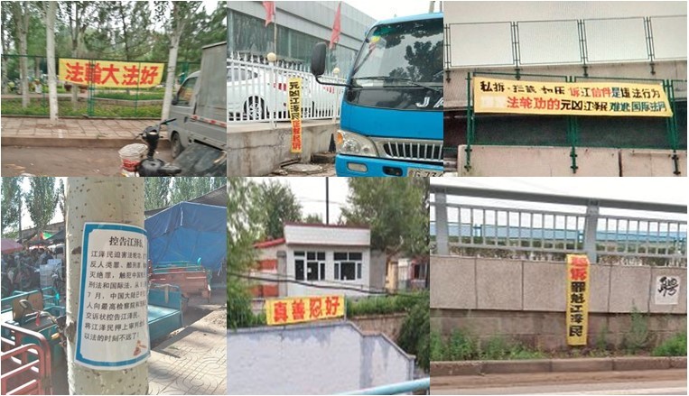 河北廊坊市街头的诉江展板、真相条幅、不干胶