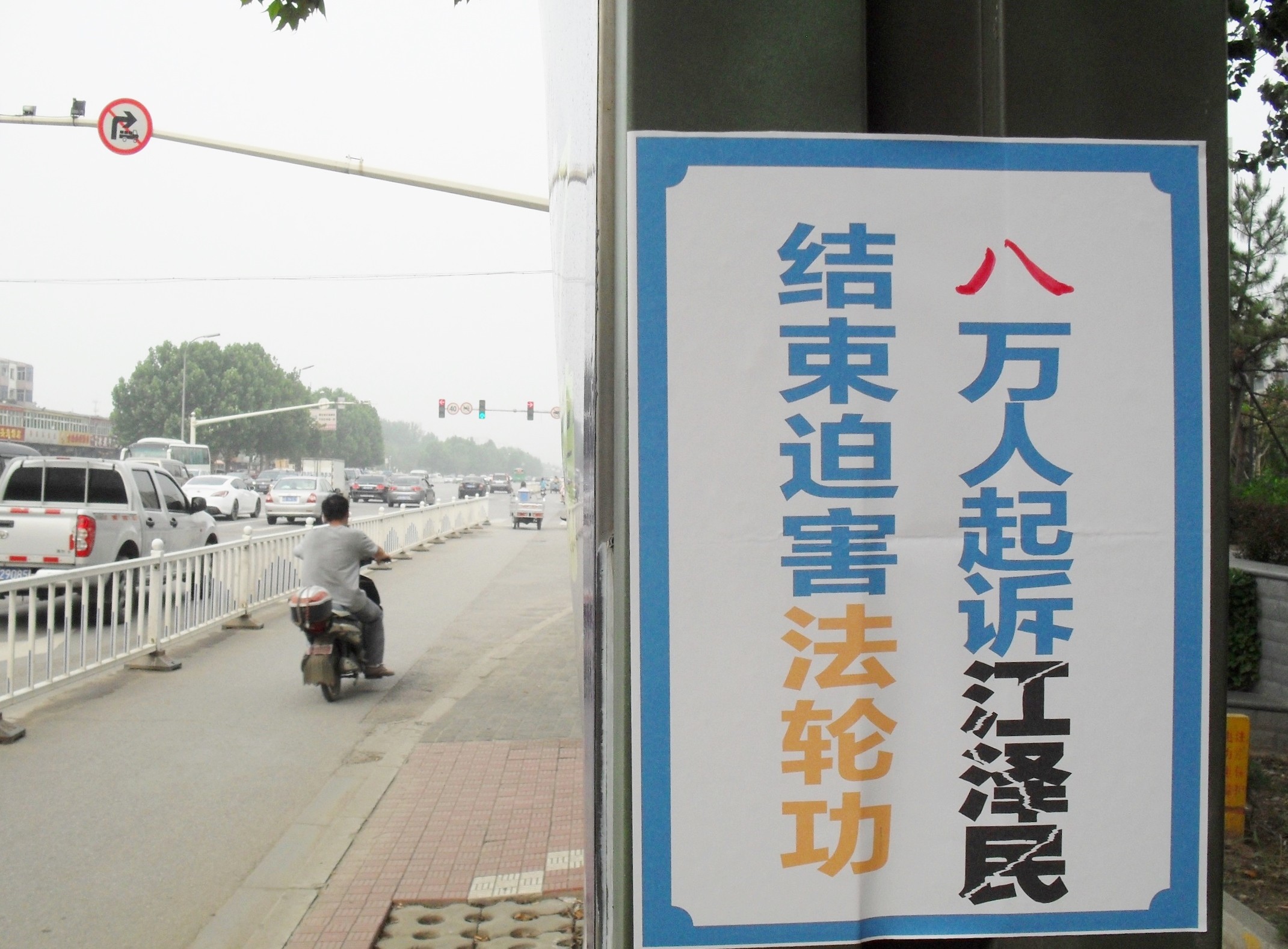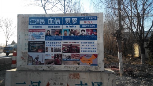 河北廊坊多处可见"起诉江泽民"标语