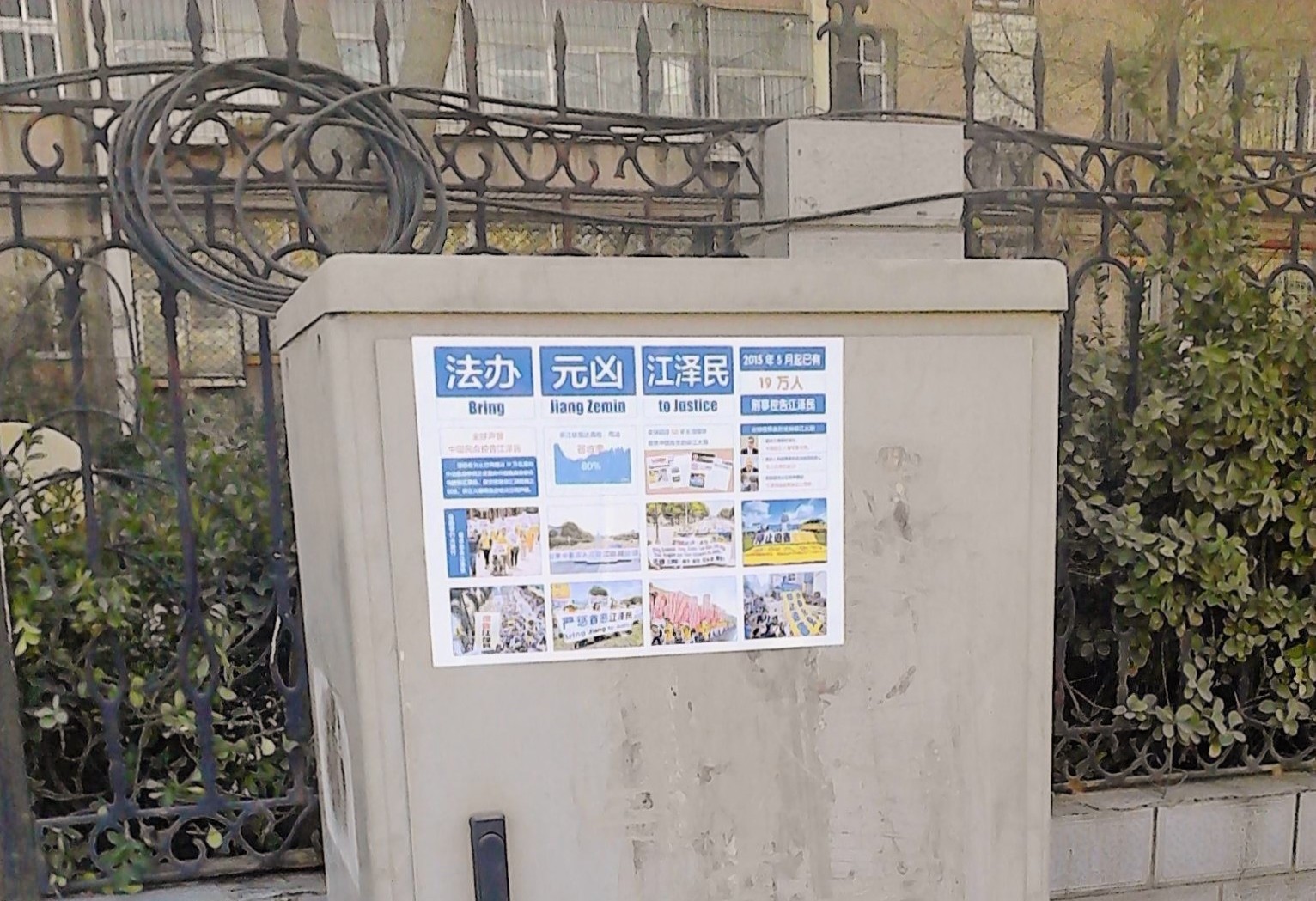 廊坊大街小巷出现"全球公审江泽民"