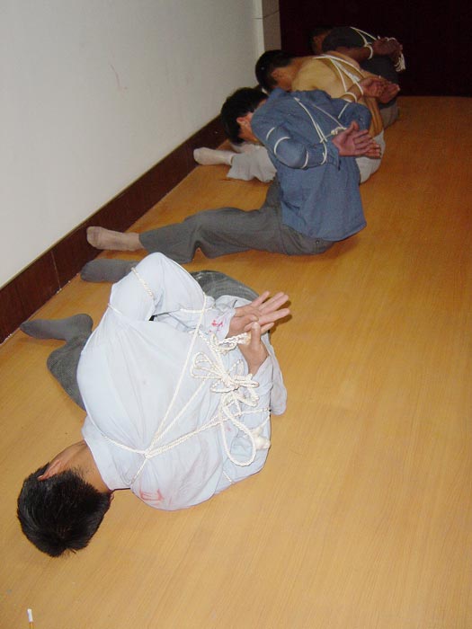 佳木斯西格木劳教所和鹤岗市第一看守所酷刑演示图:用细绳勒