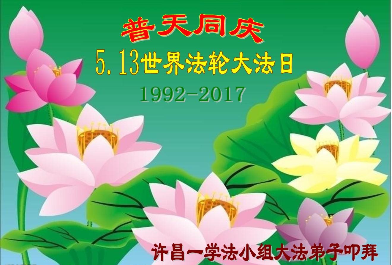 河南许昌大法弟子恭贺法轮大法洪传十三周年!敬祝师尊生日快乐