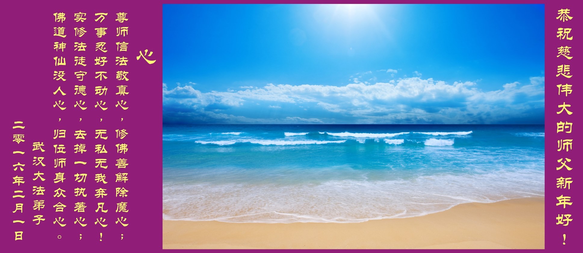 湖北省武汉市大法弟子恭祝慈悲伟大的师尊新年快乐