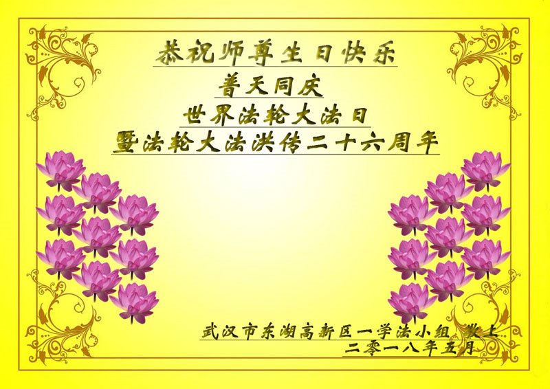 武汉大法弟子恭贺世界法轮大法日暨师尊华诞