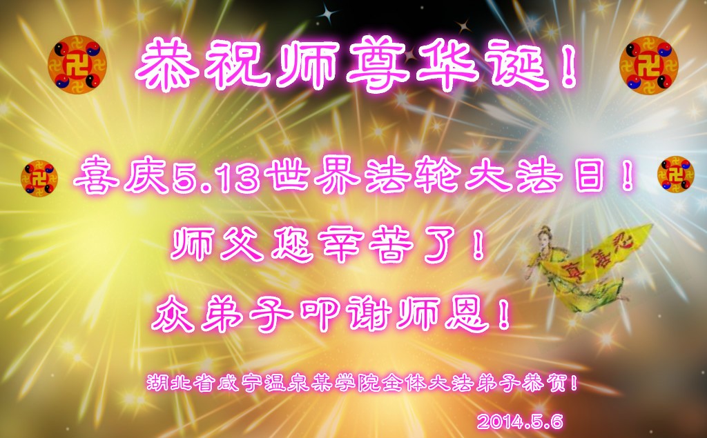 湖北省咸宁市全体大法弟子恭祝师尊生日快乐!喜庆5.13世界法轮大法日!