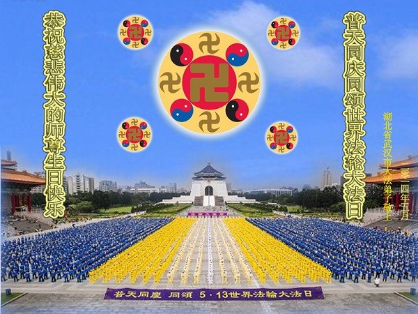 武汉大法弟子恭贺世界法轮大法日暨师尊华诞