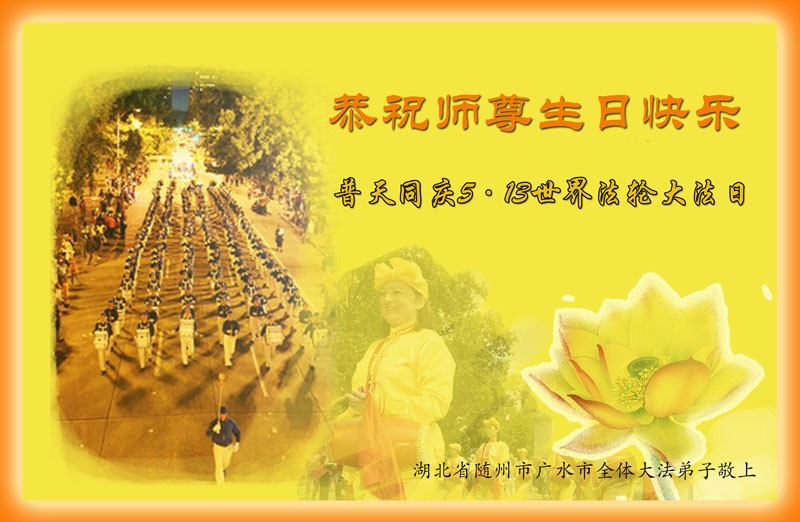 湖北省随州广水市全体大法弟子恭祝师尊生日快乐!普天同庆同祝同颂5•13世界法轮大法日!