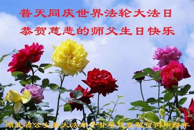 湖北省荆州市公安县大法弟子及明真相的家人恭祝师父生日快乐