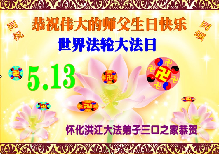 湖南怀化洪江大法弟子三口之家恭祝伟大的师父生日快乐