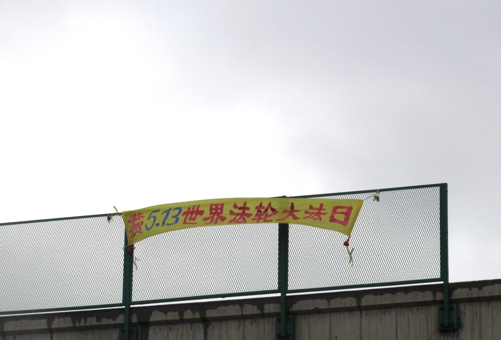 庆祝法轮大法日 内蒙古某地悬挂条幅展大法好