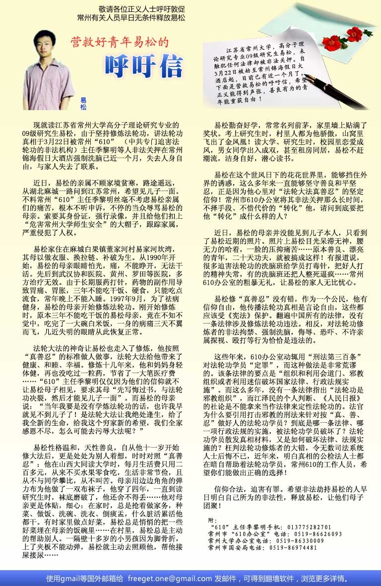 法轮功学员赵三妹遭恶警绑架图为学员在公园、报刊栏、派出所附近张贴揭露迫害真相