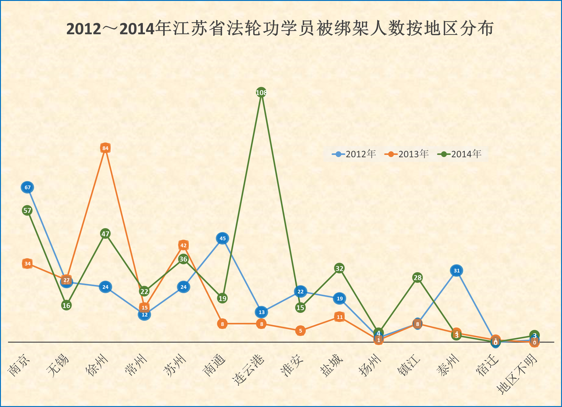 2012~2014年江苏省法轮功学员被绑架人数按地区分布