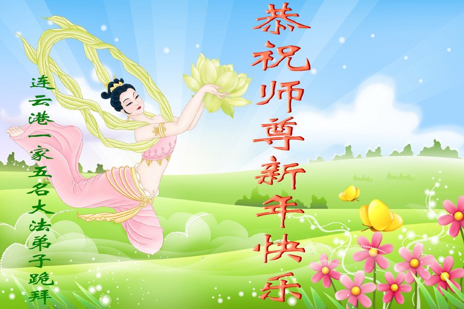 江苏省连云港大法弟子家属恭祝慈悲伟大的师父新年好!新年快乐!