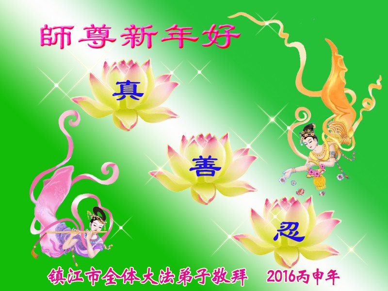 江苏省镇江市大法弟子全家恭祝师父新年好