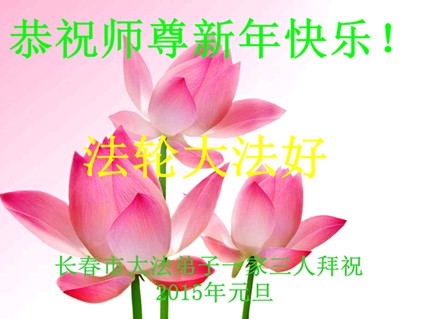 长春市一家大法弟子三人恭祝师尊新年快乐