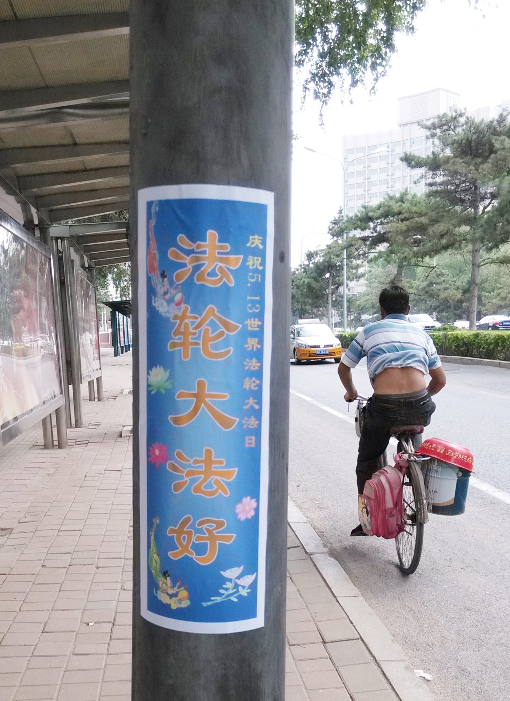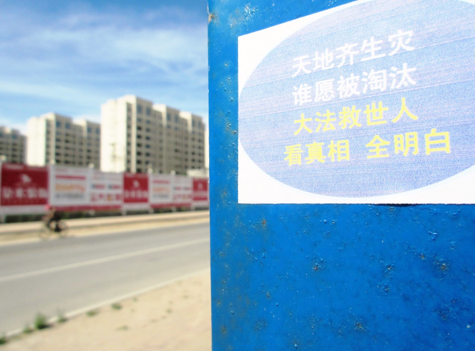 吉林某地大街小巷都可见到"法轮大法好,真善忍好"等条幅、黏贴或挂件