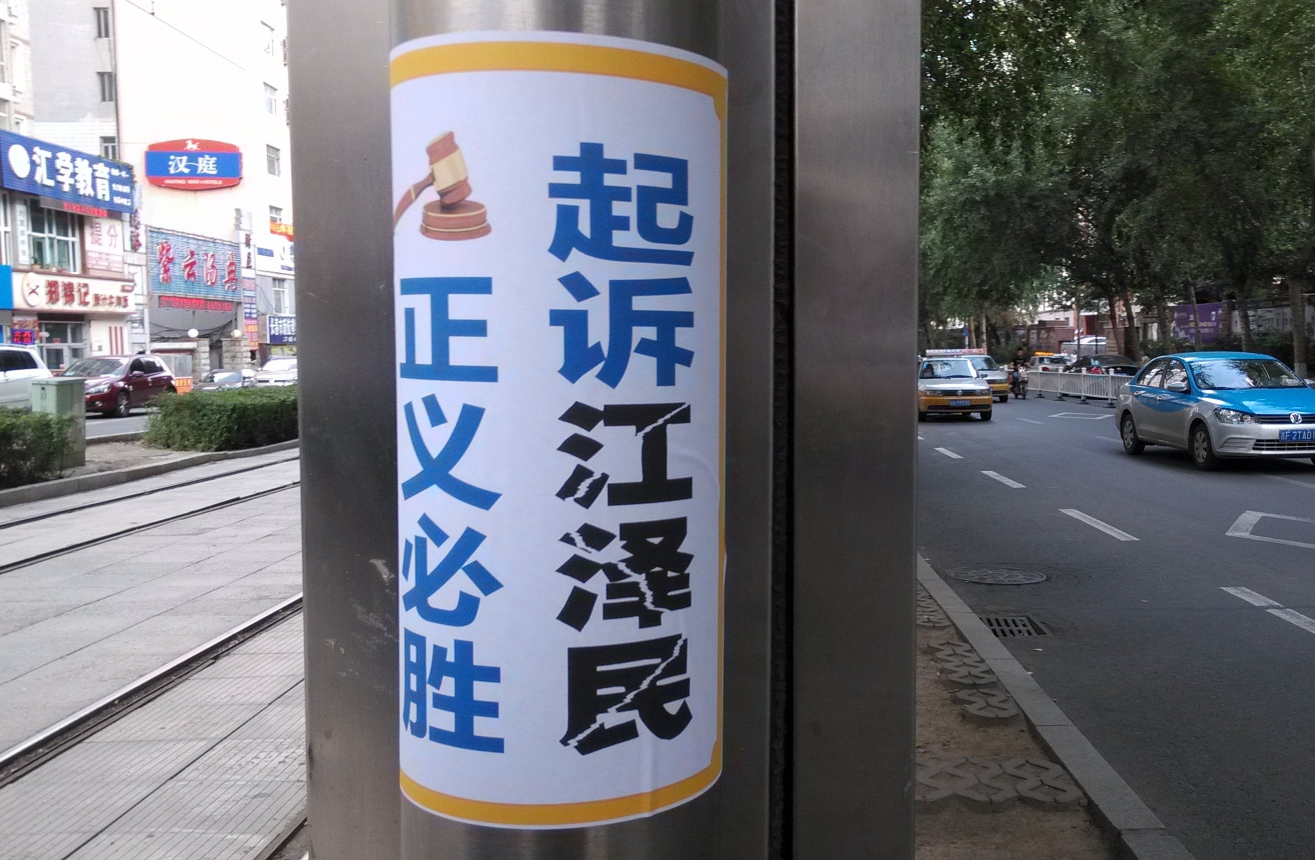 中国吉林市法轮功学员在居民小区张贴了揭露致和派出所犯罪恶行的不干胶