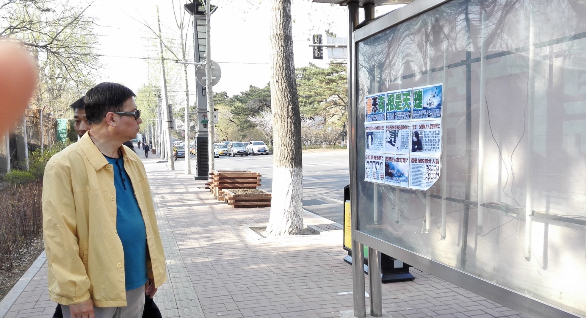 法轮功学员在长春南关区法院正法--"我支持法轮功!"(一位看过公告栏上学员传单的老人大声说)