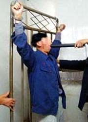 辽宁省本溪威宁劳教所的"抻刑"演示图