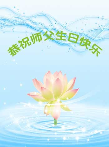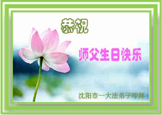 沈阳市一学法小组全体大法弟子恭祝慈悲的师父生日快乐、恭贺伟大的师父传法十三周年