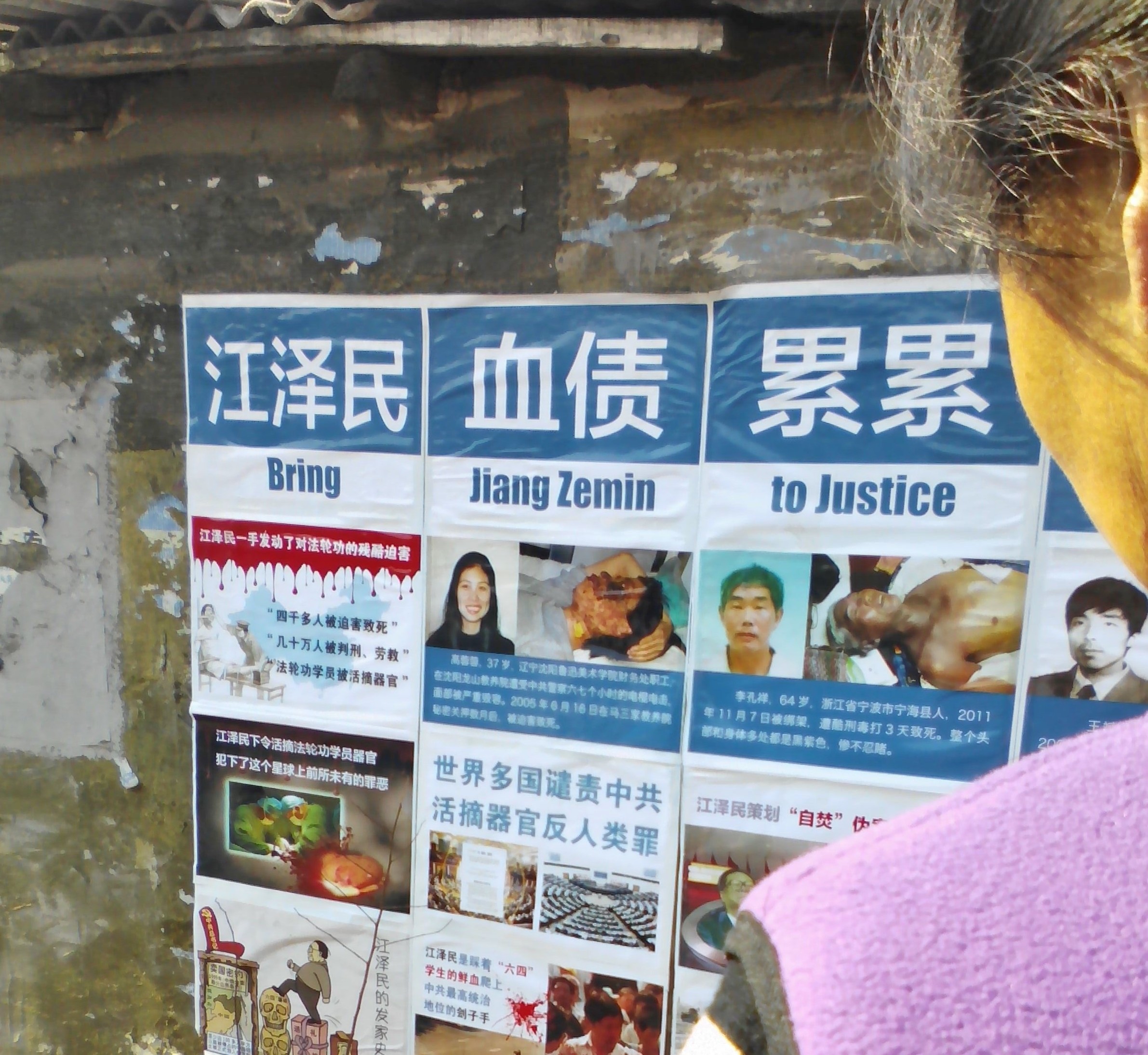 抚顺市城市乡村出现的诉江展板和真相条幅