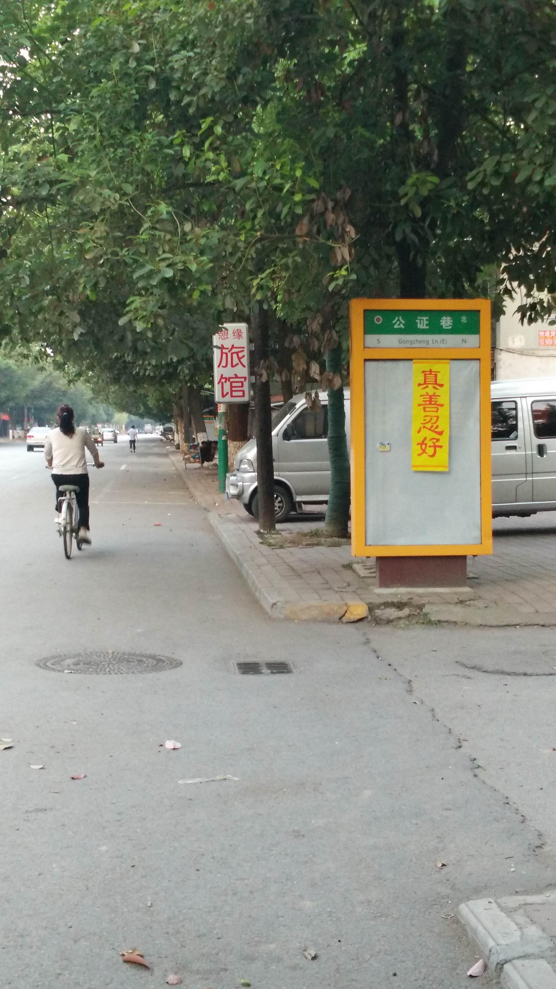 中国法轮功学员西安工作之旅在西安放置法轮功真相卡片、传单,以便西安当地居民和游客了解真相