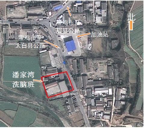 迫害大法弟子的黑窝宝鸡市潘家湾洗脑班图为卫星地图