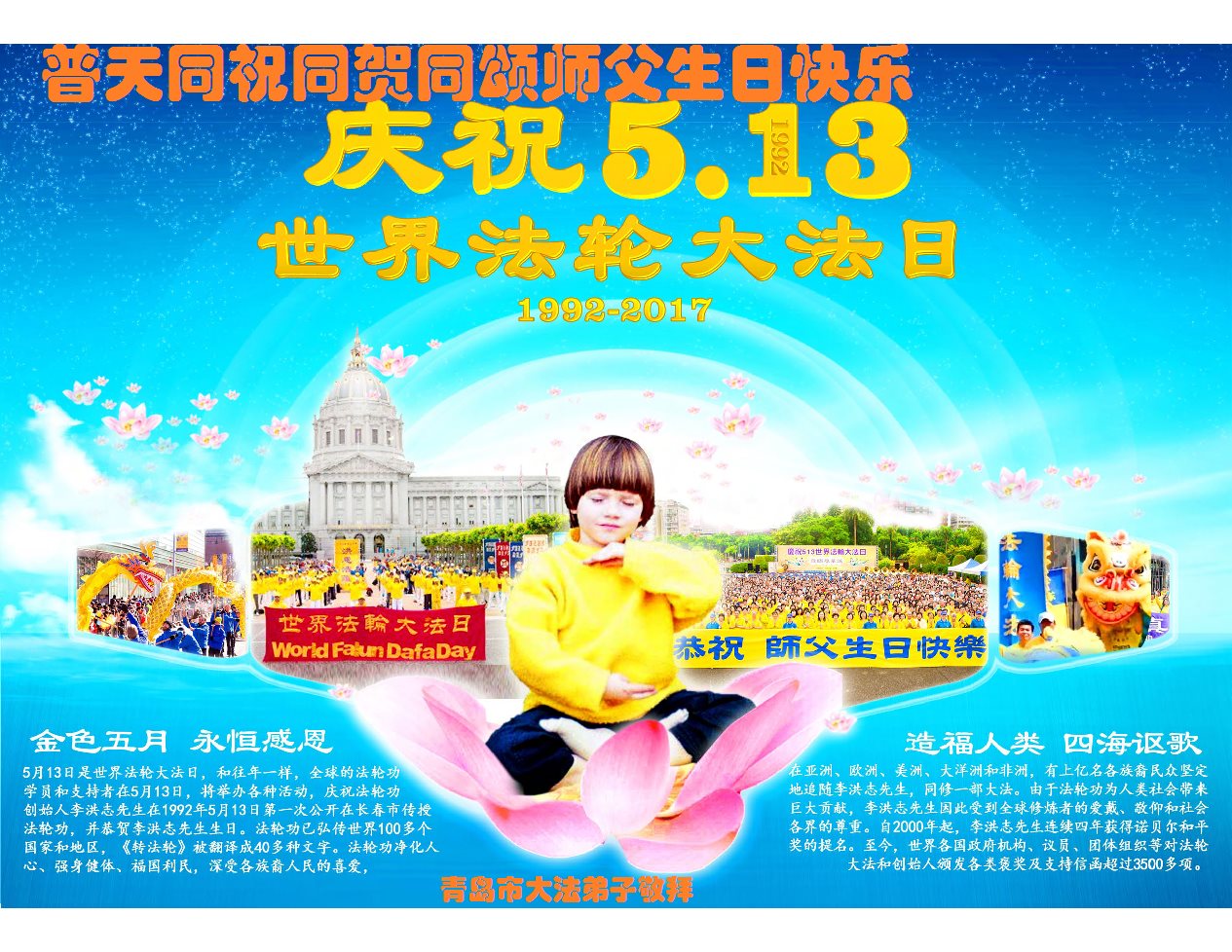法轮功,青岛大法弟子恭贺世界法轮大法日暨师尊华诞(22条)