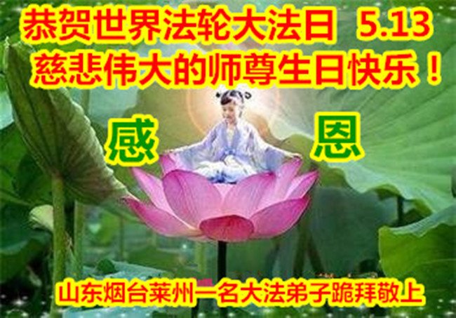 山东省莱州市全体大法弟子恭贺慈悲伟大的师尊传法十三周年!喜庆5月13日世界法轮大法日
