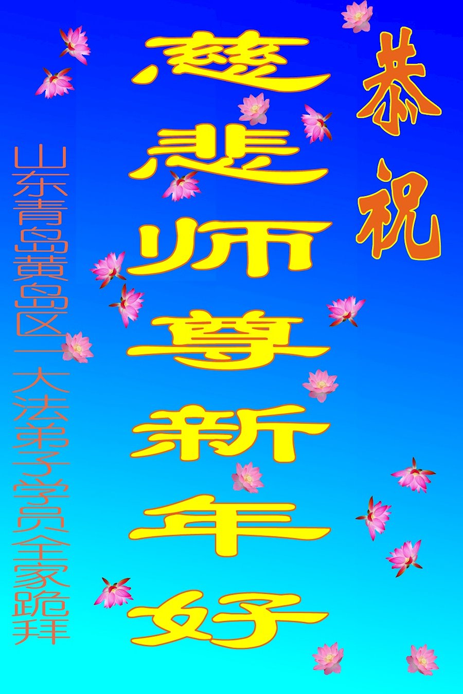 山东青岛地区大法弟子恭祝慈悲伟大的师尊元旦快乐