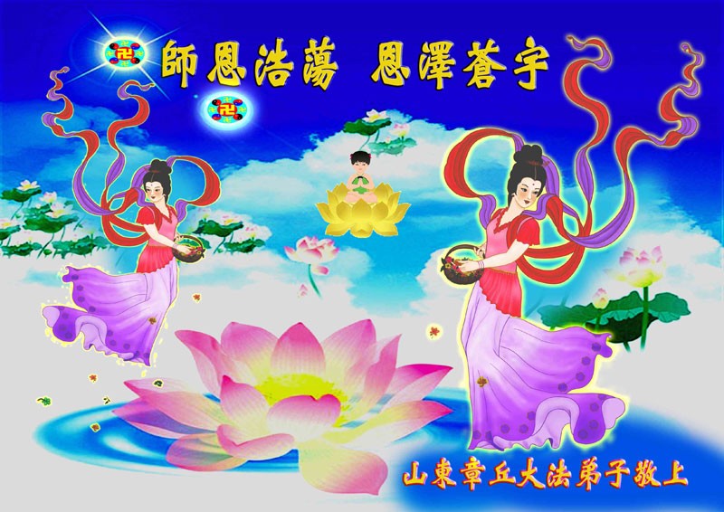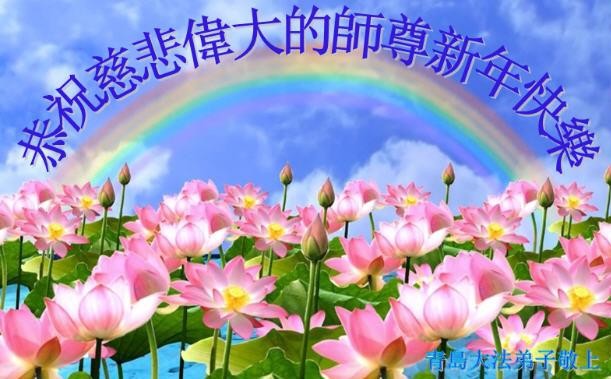 山东省青岛大法弟子恭祝慈悲伟大的师尊新年快乐