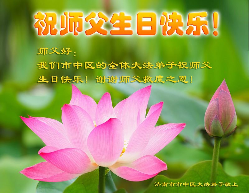 济南全体大法弟子恭贺法轮大法洪传十三周年!敬祝师尊生日快乐