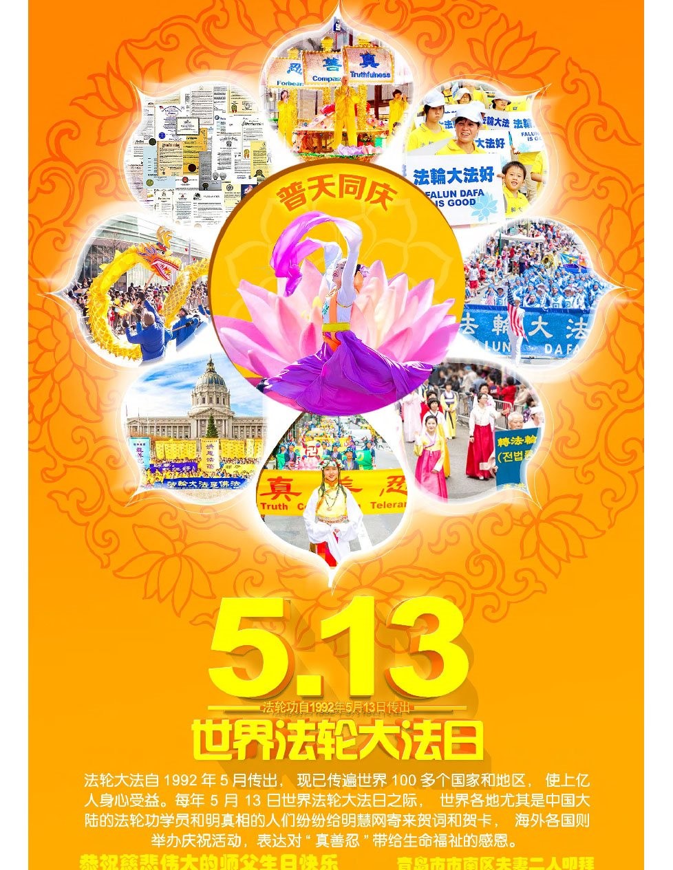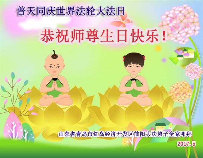 青岛大法弟子恭贺世界法轮大法日暨师尊华诞