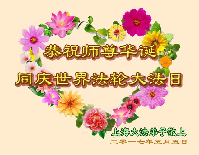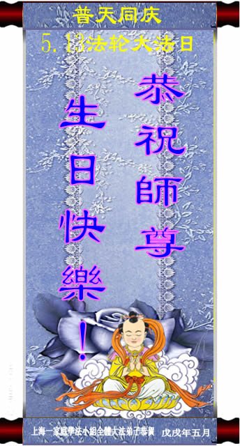上海法轮大法弟子敬祝师尊生日快乐!热烈祝贺大法洪传十三周年暨世界法轮大法日
